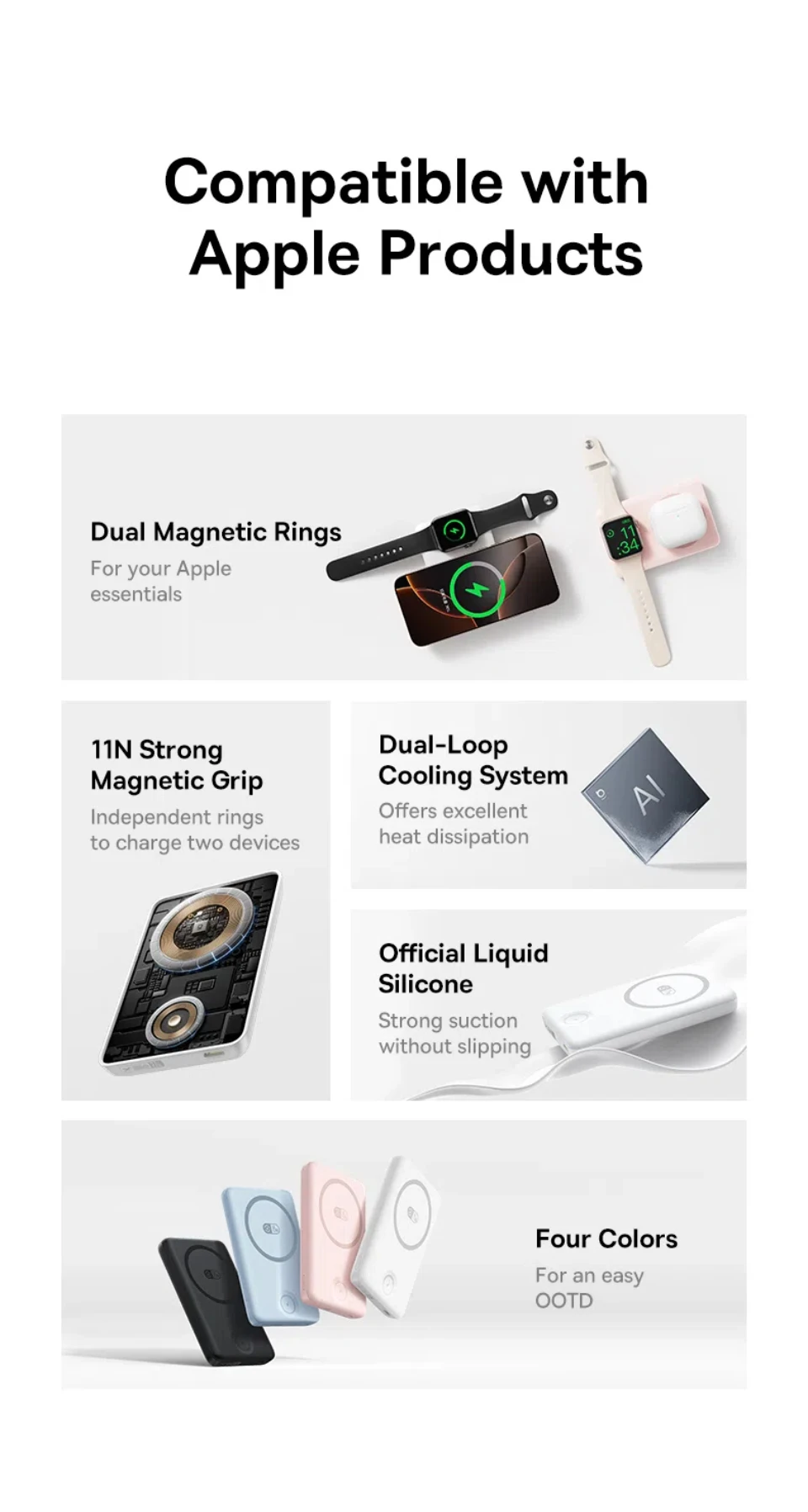 2. 11N Strong Magnetic Grip: Independent rings to charge two devices.