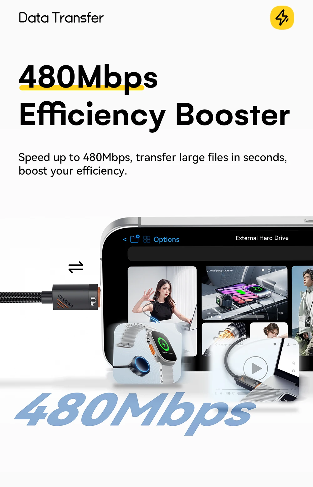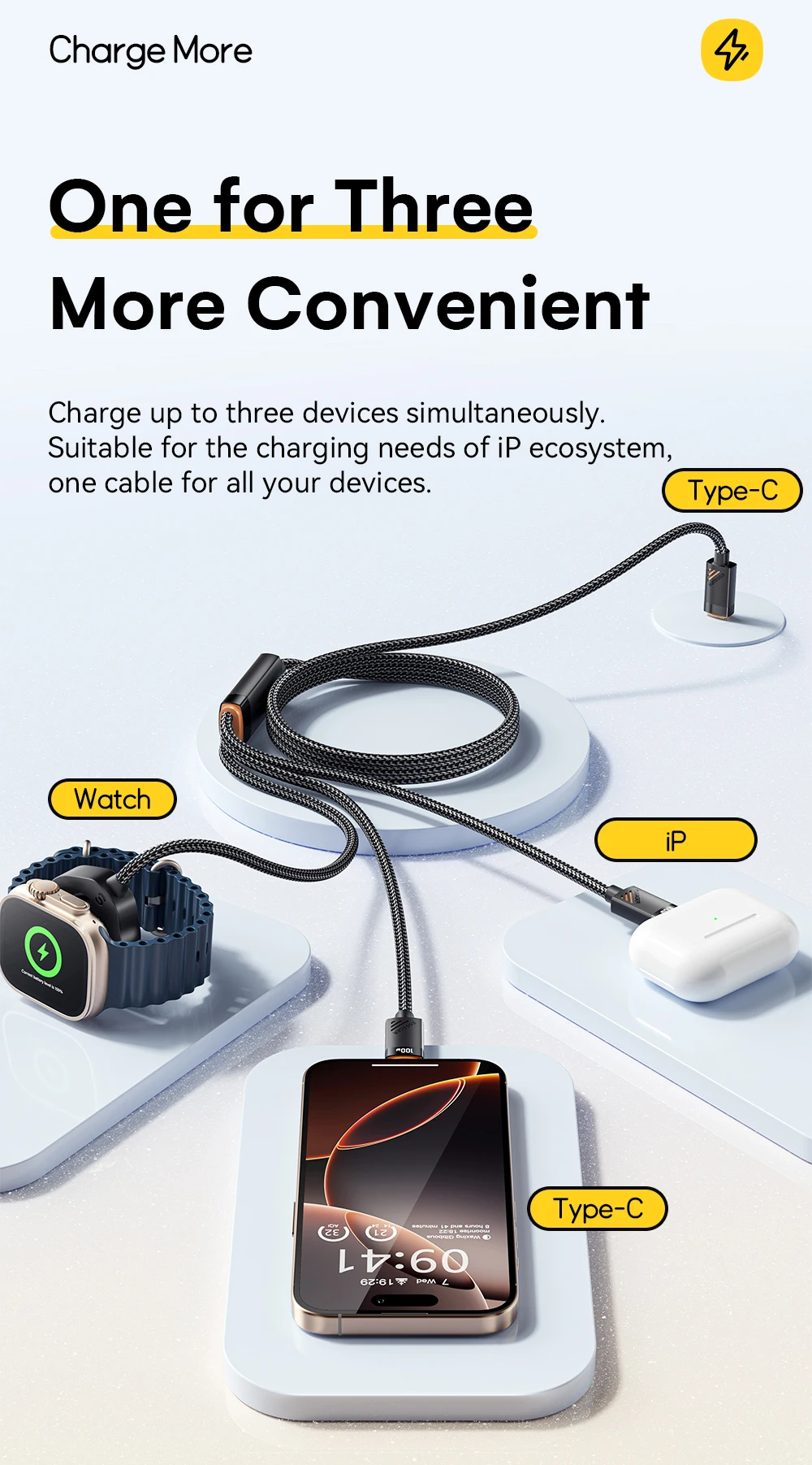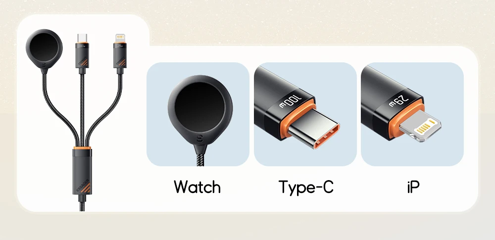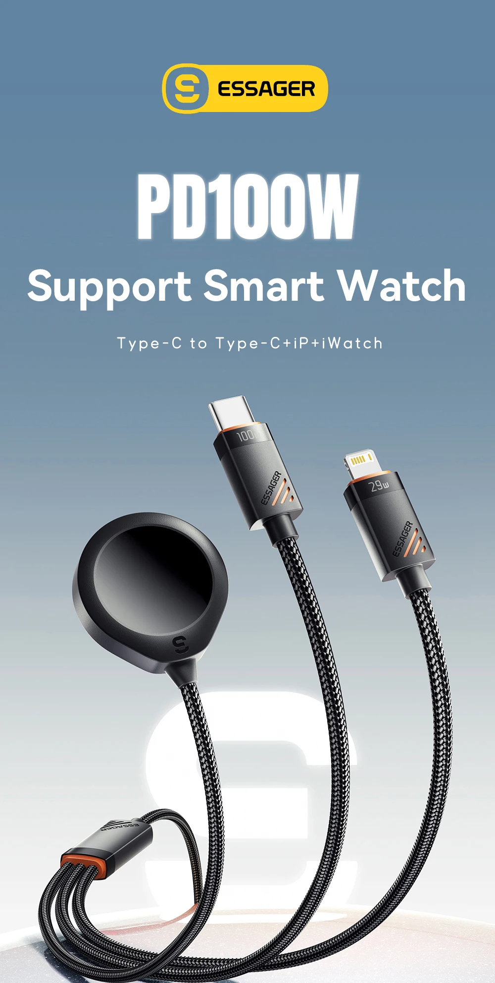 3 in 1 100W Multi USB C Charging Cable for Apple Iwatch Iphone 16/15/14/13 Pro with Type C Lightning Fast Charging Cable