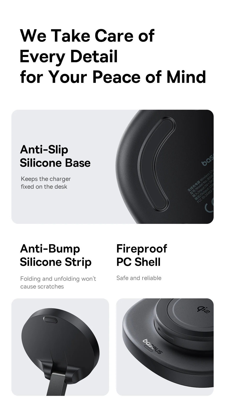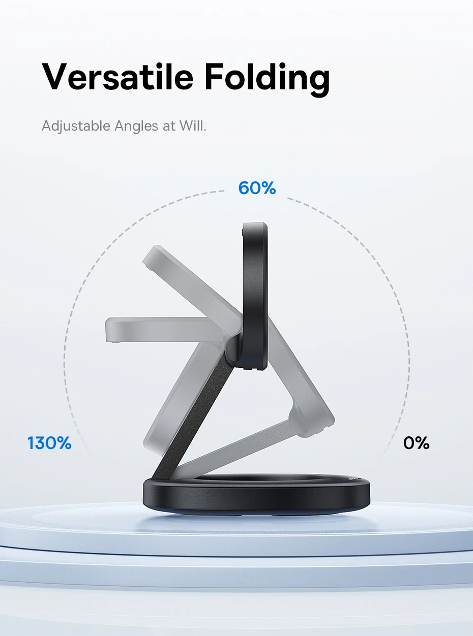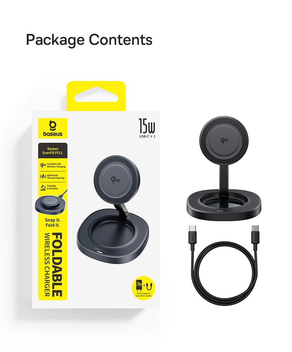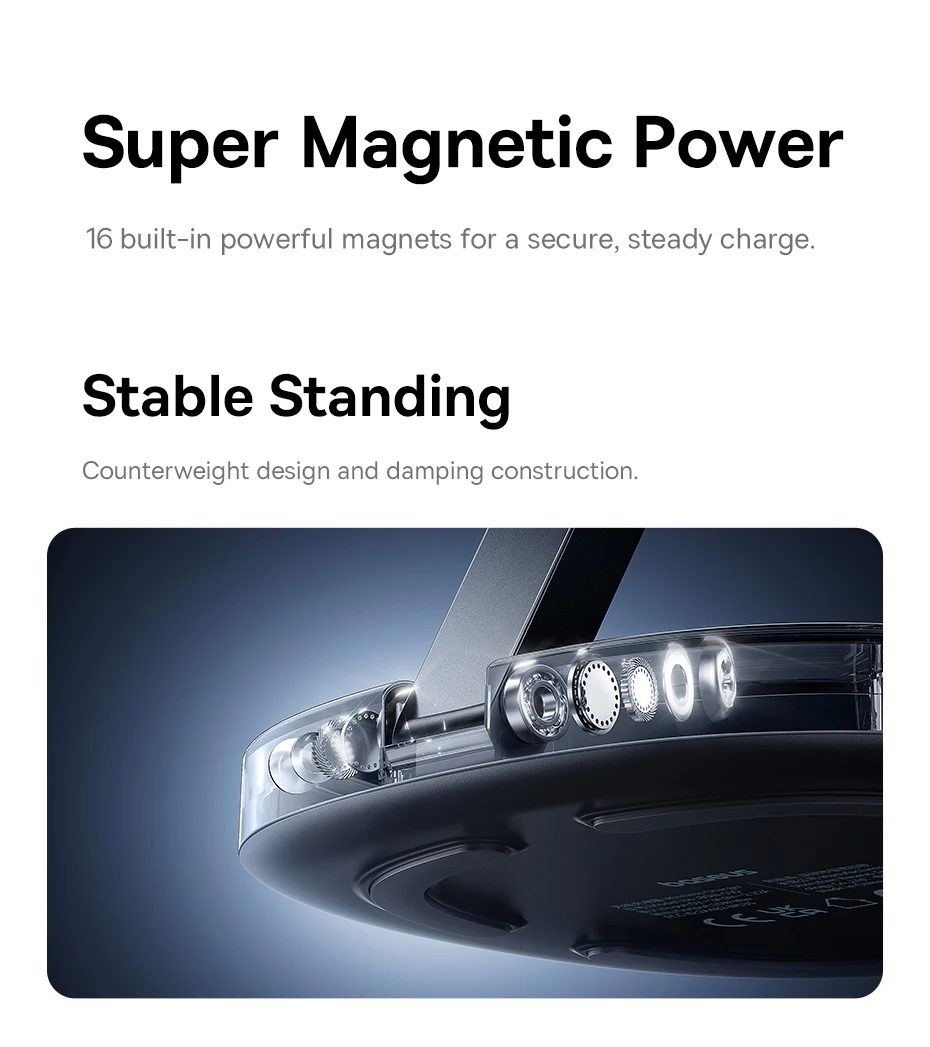 Baseus Qi2 15W Foldable Wireless Charger Stand Magnetic Adjustable Viewing Angle for Iphone 16 15 14 13 Airpods 2Nd 3Rd Gen Pro