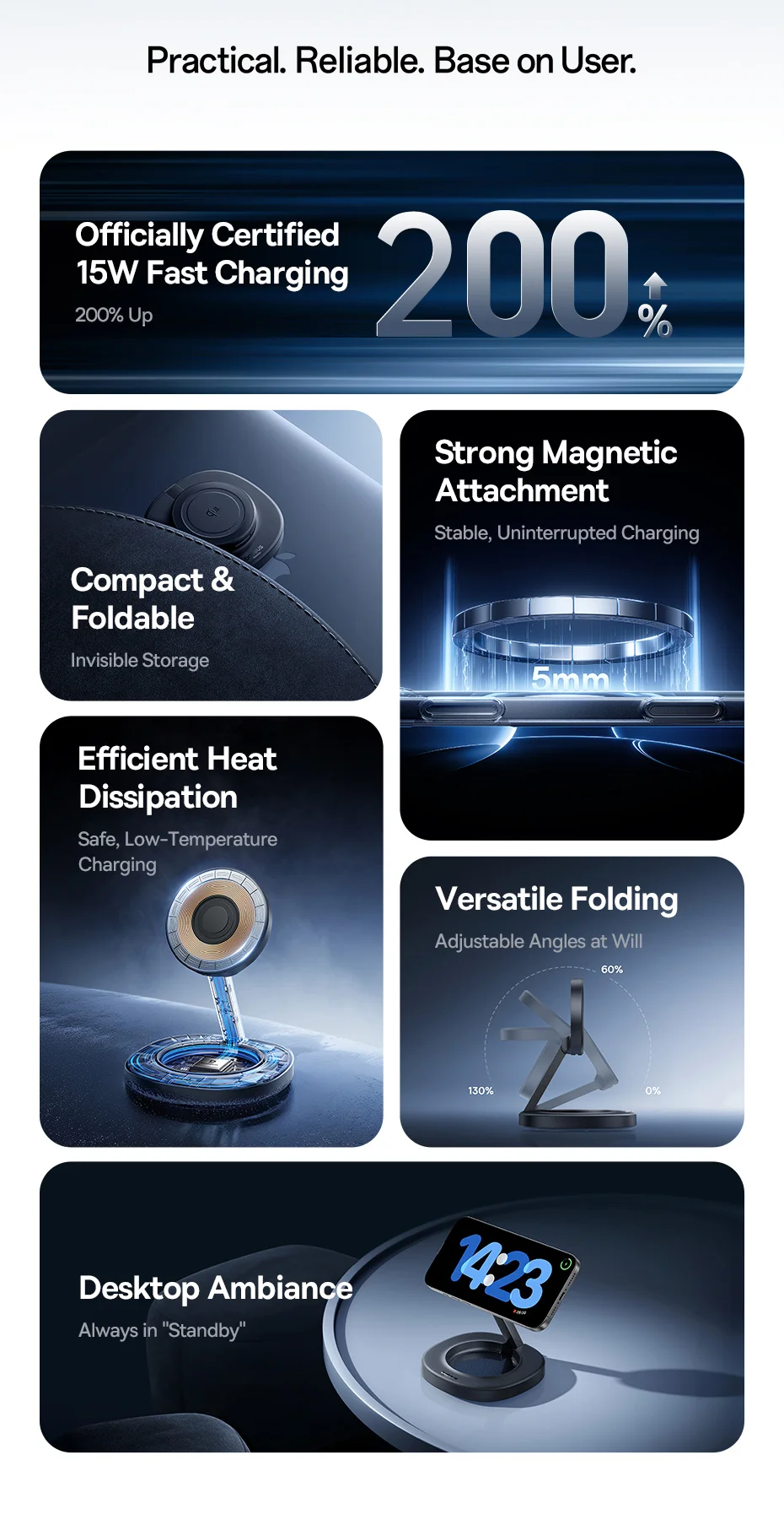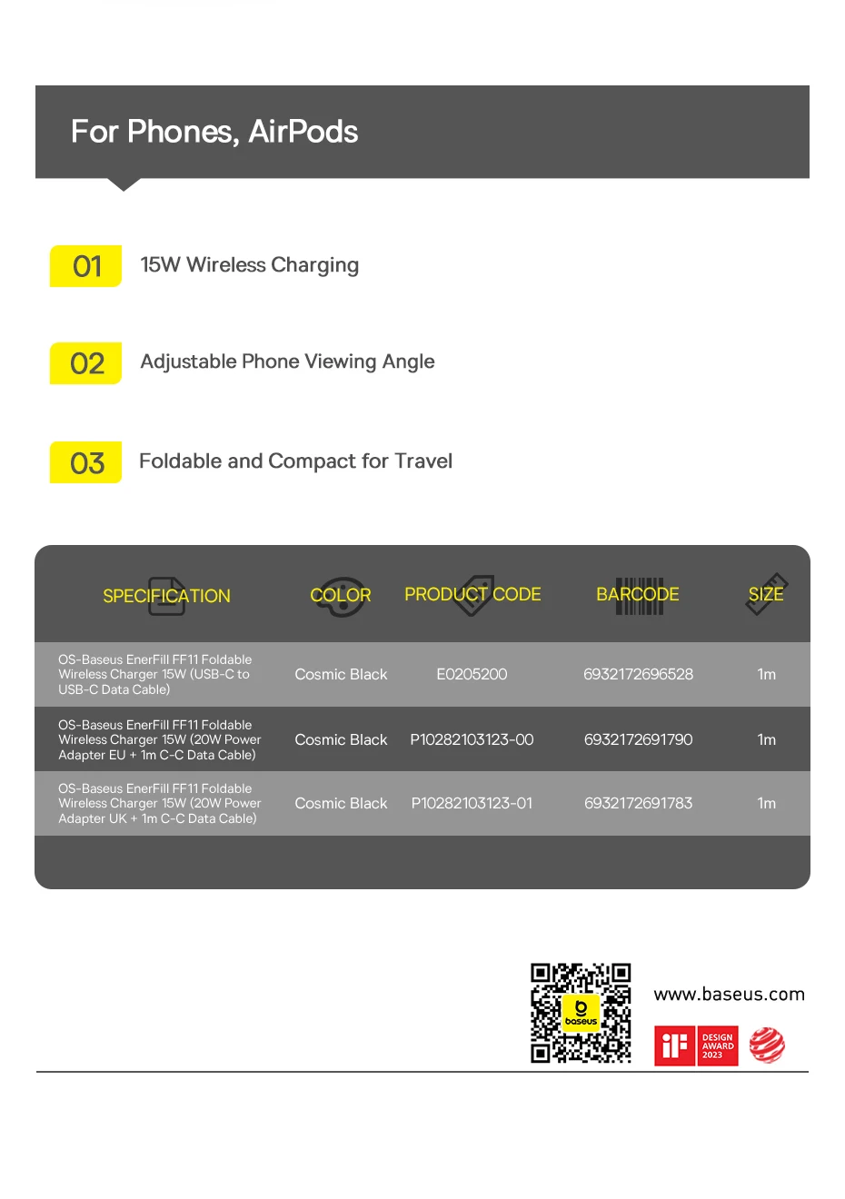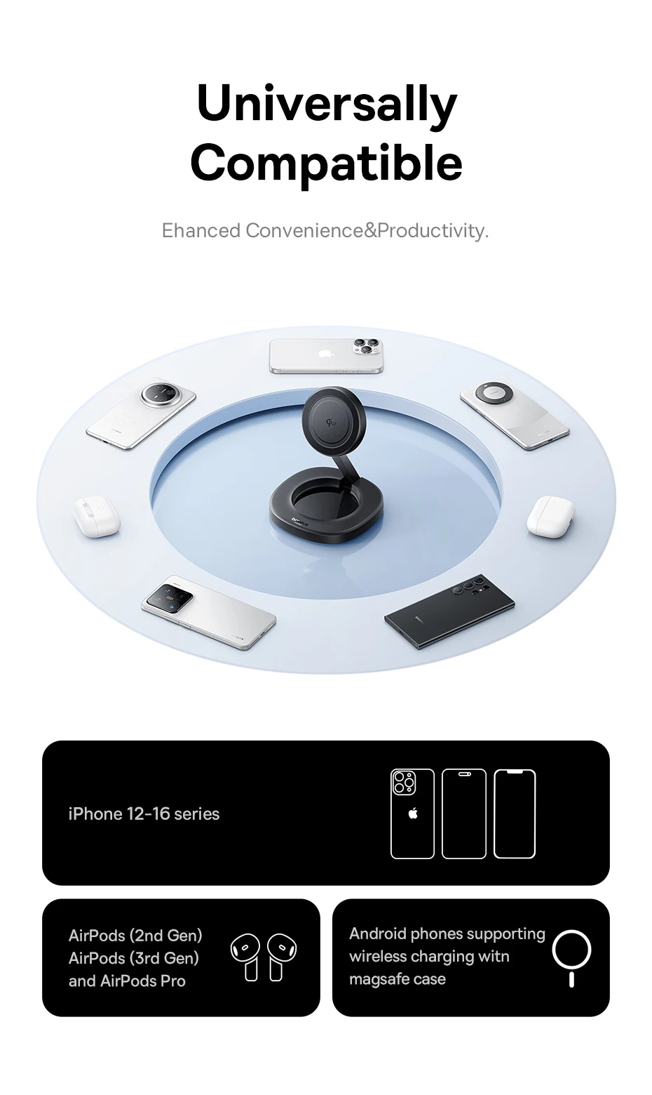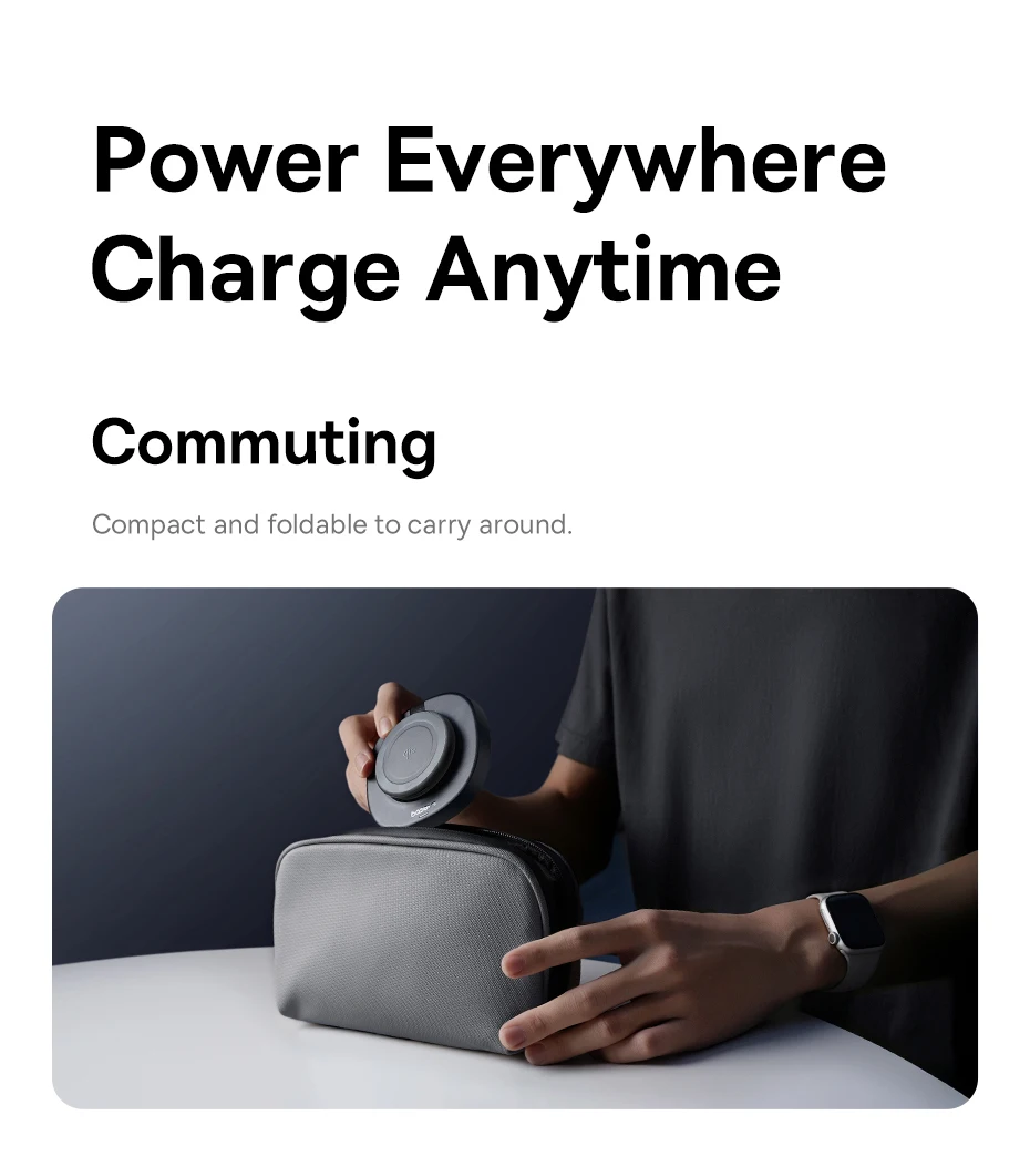 Baseus Qi2 15W Foldable Wireless Charger Stand Magnetic Adjustable Viewing Angle for Iphone 16 15 14 13 Airpods 2Nd 3Rd Gen Pro